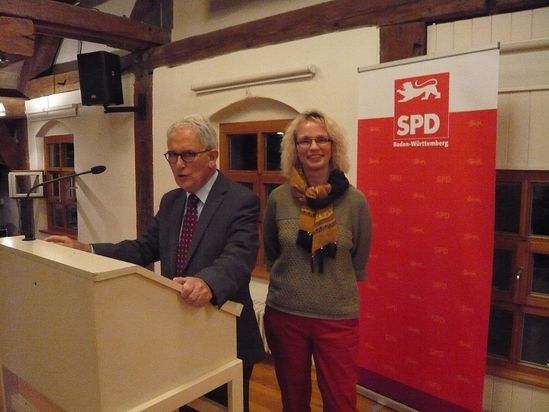 Anlässlich des Tages der Deutschen Einheit hielt Hans Georgii, ehemaliger Präsident am Landgericht Ravensburg und Altstadtrat einen Vortrag zur Wiedervereinigung der beiden Deutschen Staaten. Georgii beleuchtete verschiedene Handlungsstränge, die teilweise unterschiedliche Zielsetzungen hatten, z. B die Hartnäckigkeit der Bürgerrechtsbewegung für einen eigenen demokratischen Staat. Die menschlichen Erfahrungen Georgiis, die er als „Aufbauhelfer“ für die Sächsische Justiz machte, flossen in den lebhaften Vortrag mit ein. Moderiert wurde der Abend von Christel Ulmer, Vorsitzende der SPD Ravensburg.