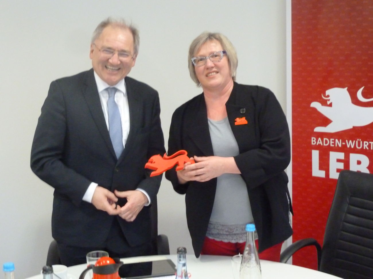 Die Stadt Ravensburg bekommt 1,9 Millionen Euro. Darüber freuen sich Peter Hofelich und Heiek Engelhardt