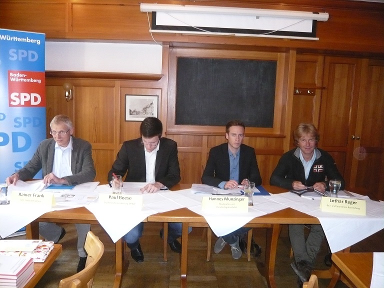 Das Thema Bauen und Wohnen in Ravensburg wurde im Rahmen einer Podiumsdiskussion unter Moderation von Hannes Munzinger aus mehreren Sichtweisen beleuchtet. Manfred Ströhm, stv. Vorsitzender der SPD Ravensburg konnte Diskutanten aus verschiedenen Bereichen begrüßen. Der Bau- und Sparverein wurde durch Geschäftsführer Lothar Reger vertreten, die Interessen der Studierenden an der Dualen Hochschule vertrat deren Sprecher Paul Beese. Für die SPD-Gemeinderatsfraktion war Rainer Frank auf dem Podium.